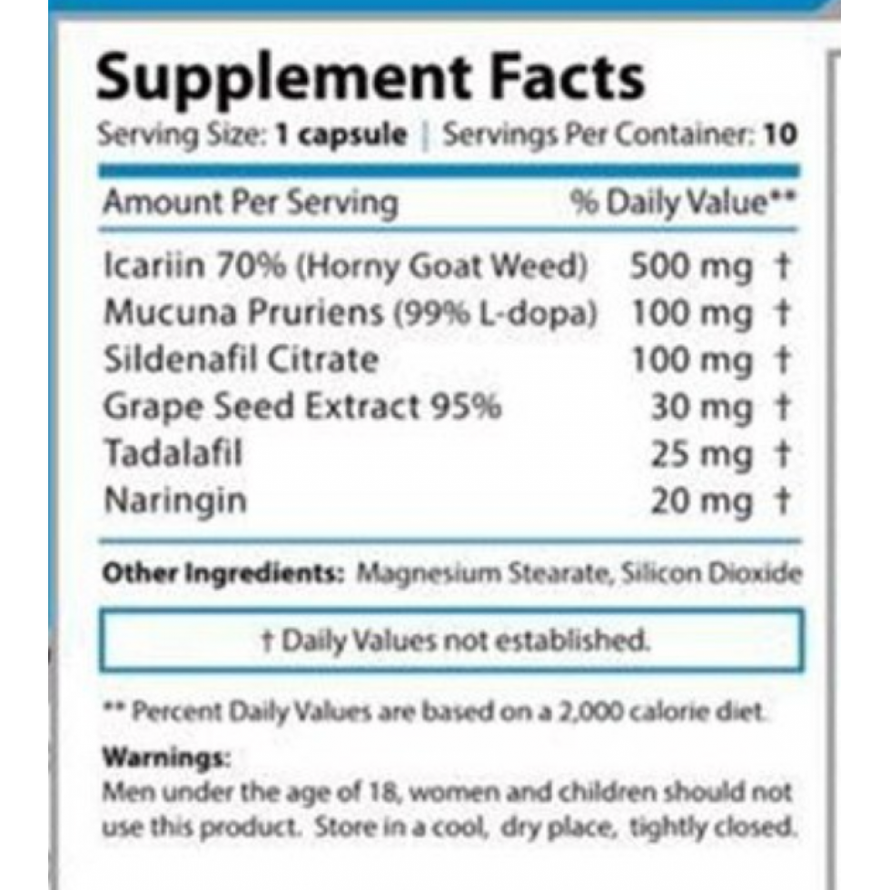 - Экстракт эпимедиума (Horny Goat Weed, икариин) — 500 мг