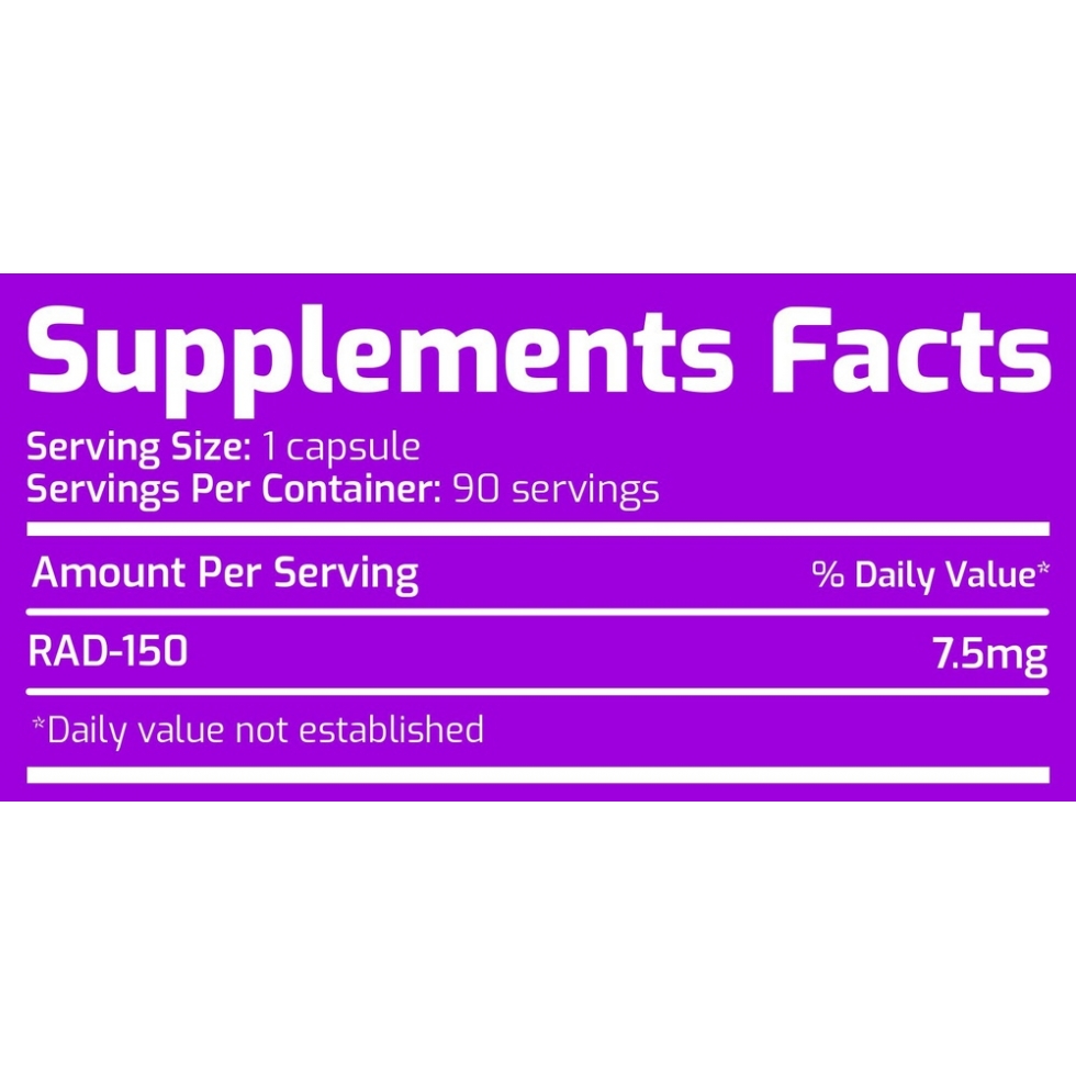 Приймайте по одній (1) капсулі 1–2 рази на день, бажано в один і той же час, незалежно від прийому їжі. Завдяки тривалій дії RAD-150 достатньо підтримувати стабільне дозування без пропусків. Рекомендований курс становить 8–12 тижнів. Після закінчення курсу необхідно провести післякурсову терапію (ПКТ). Перед використанням прочтите всю этикетку и следуйте инструкциям.
